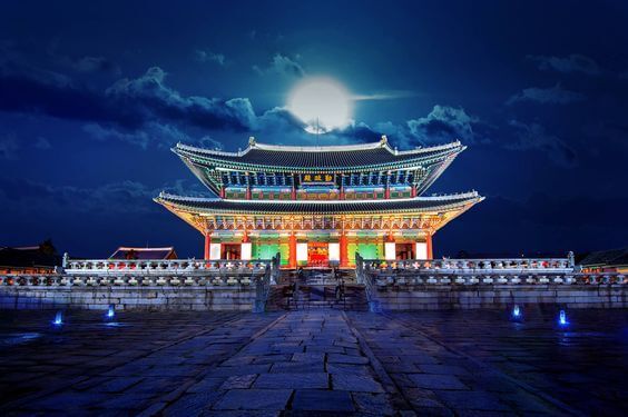 야간 경복궁에서는 많은 관람객이 한복을 착용하고 방문하며 무료 입장 대상자 이기도 합니다.