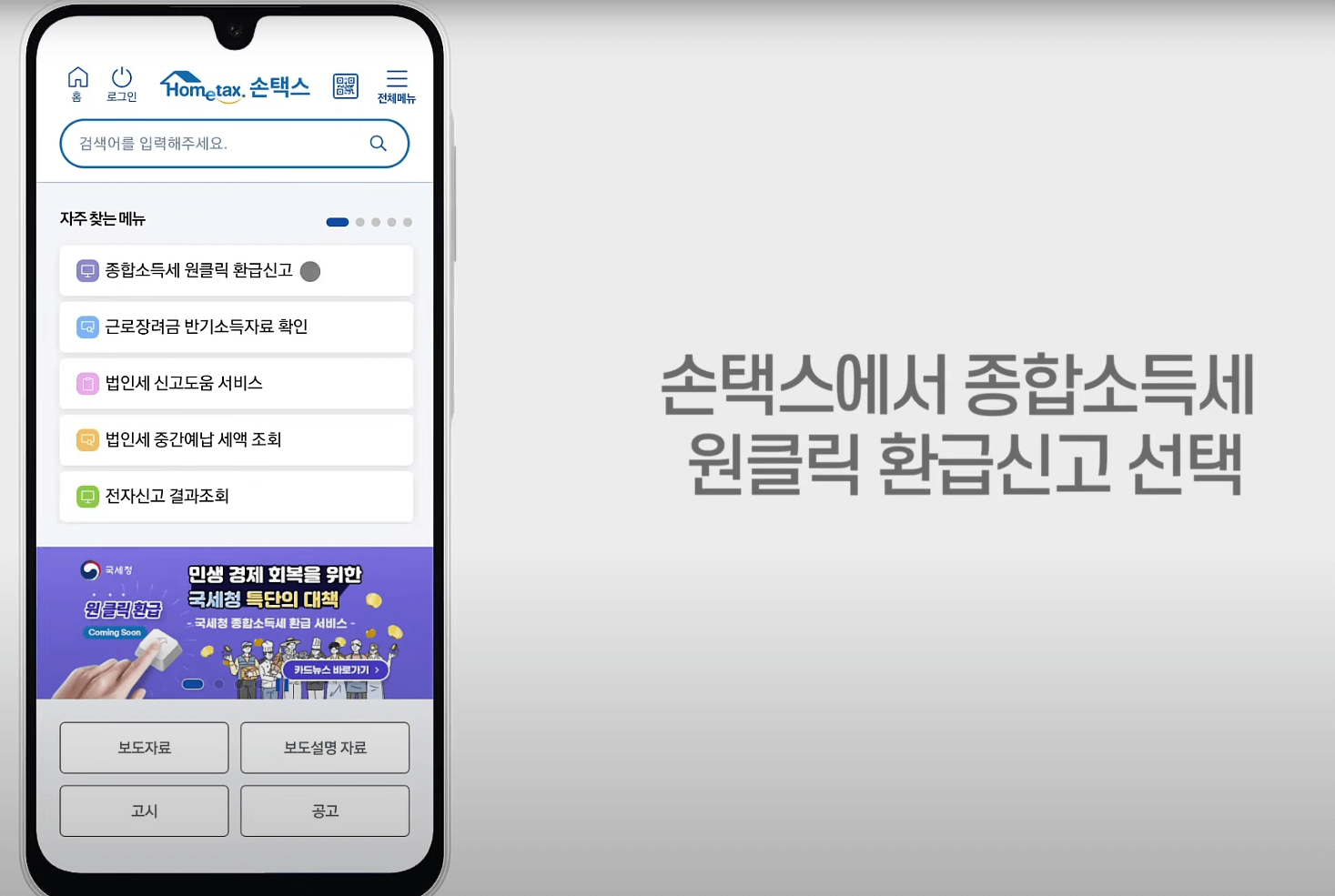 국세청이 운영하는 원클릭 세금 환급 서비스