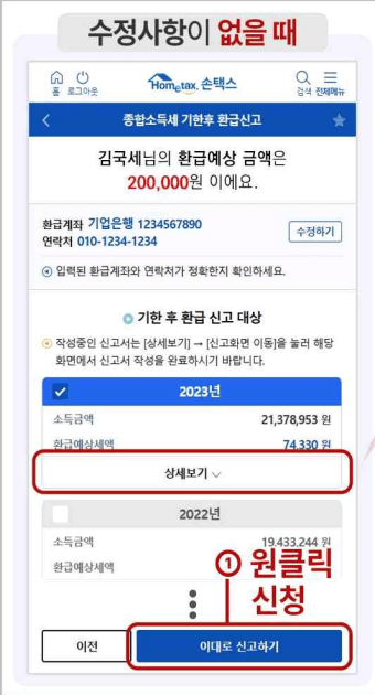 원클릭 세금 환급 서비스로 개인정보유출에 대한 걱정❌